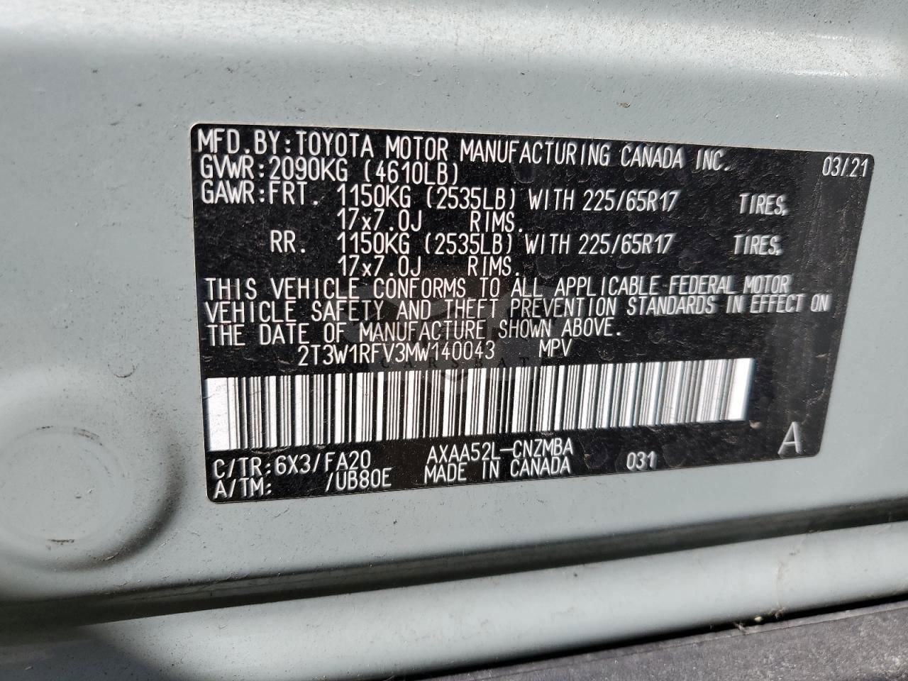 • VIN: 2T3W1RFV3MW140043