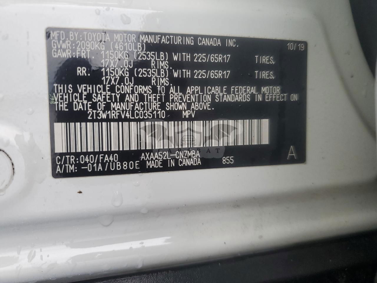 • VIN: 2T3W1RFV4LC035110