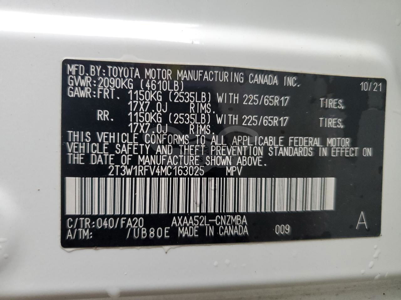 • VIN: 2T3W1RFV4MC163025