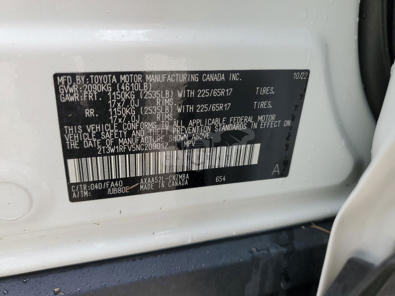 • VIN: 2T3W1RFV5NC209012