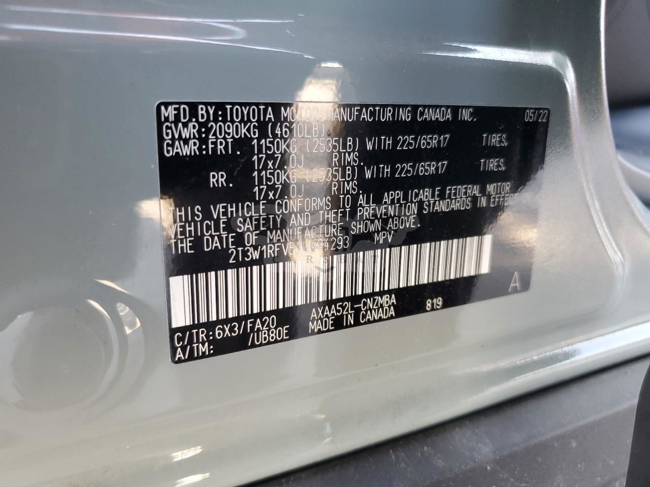 • VIN: 2T3W1RFV5NW204293