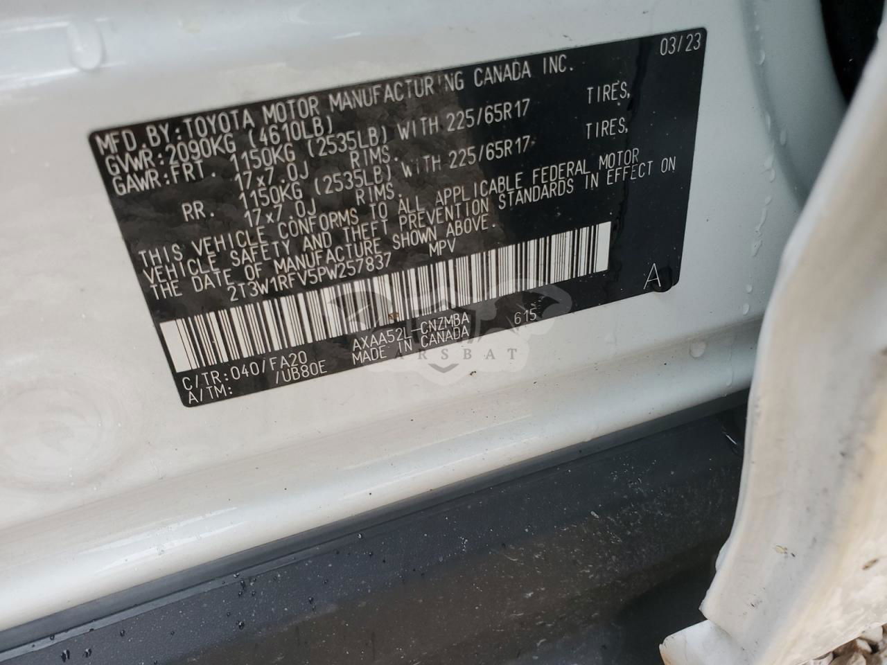 • VIN: 2T3W1RFV5PW257837