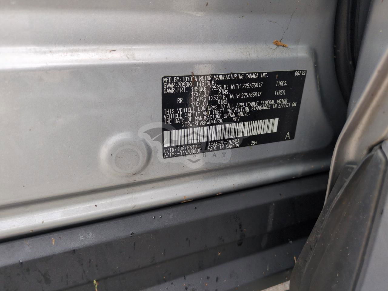 • VIN: 2T3W1RFV8KW046690