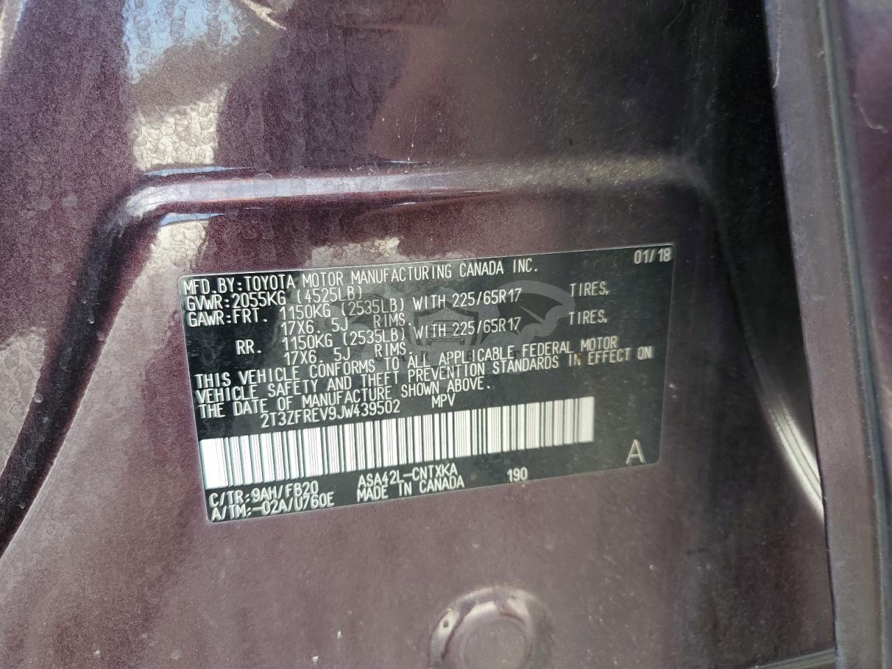 • VIN: 2T3ZFREV9JW439502
