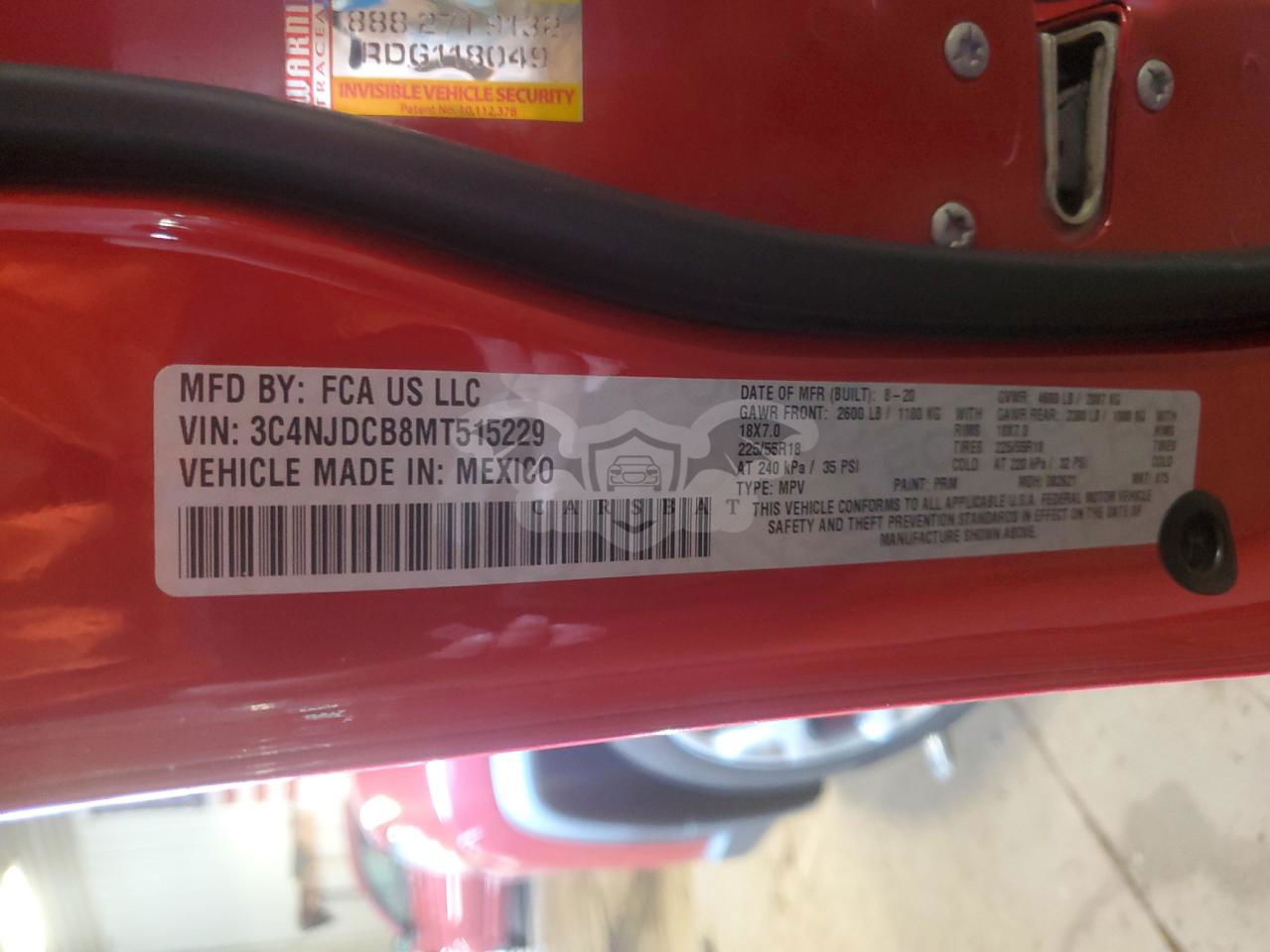 • VIN: 3C4NJDCB8MT515229