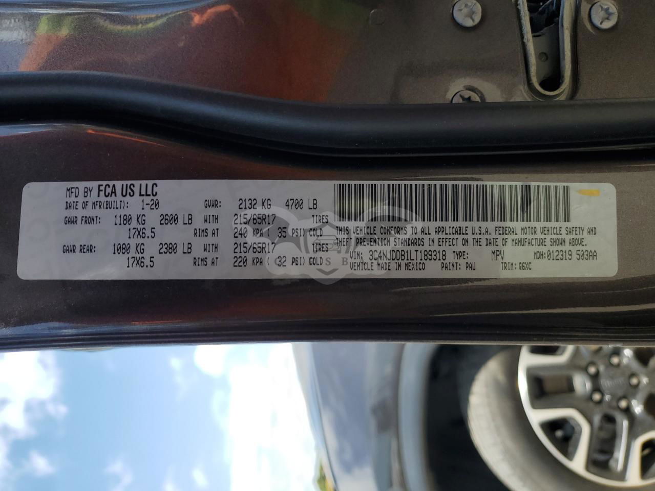 • VIN: 3C4NJDDB1LT189318