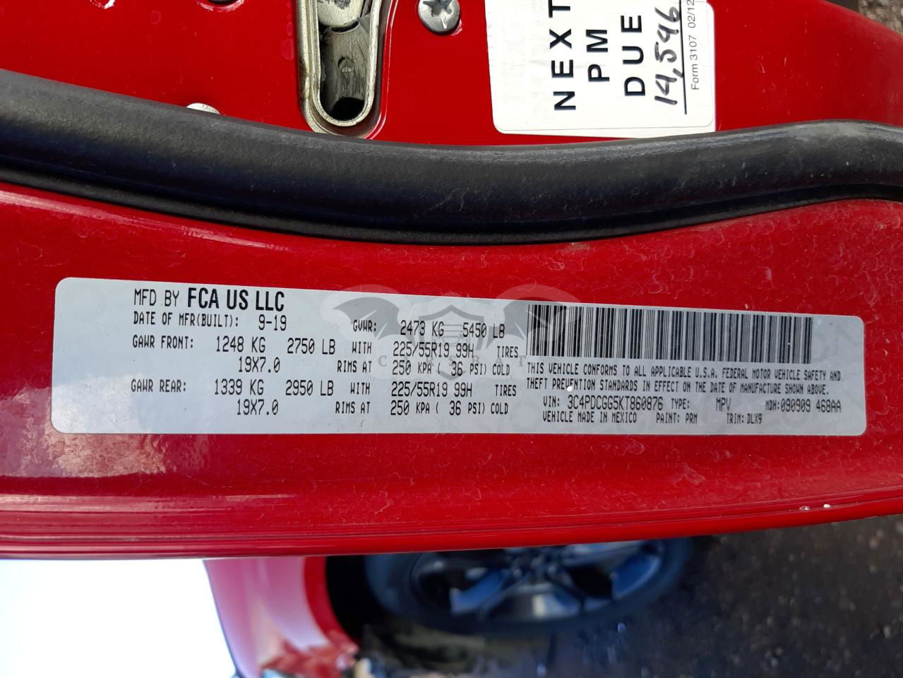• VIN: 3C4PDCGG5KT860876
