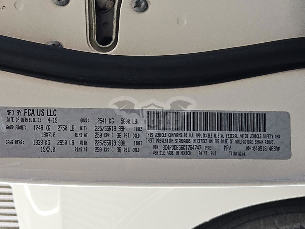 • VIN: 3C4PDDEG6KT764747