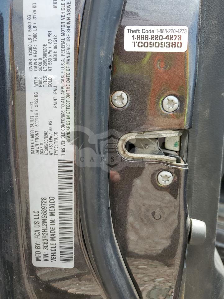 • VIN: 3C63R3HL2MG689728