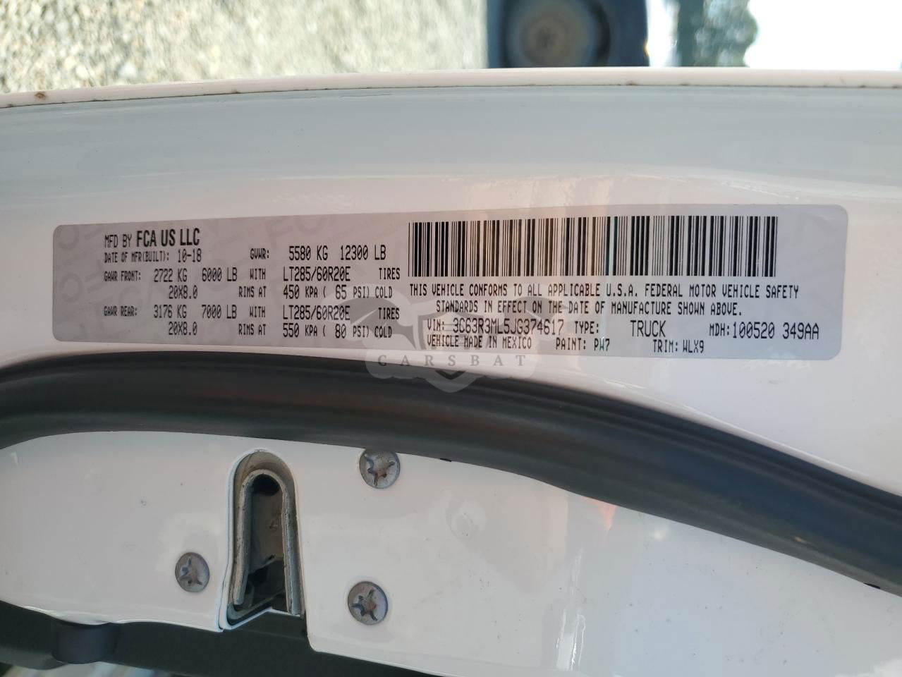 • VIN: 3C63R3ML5JG374617