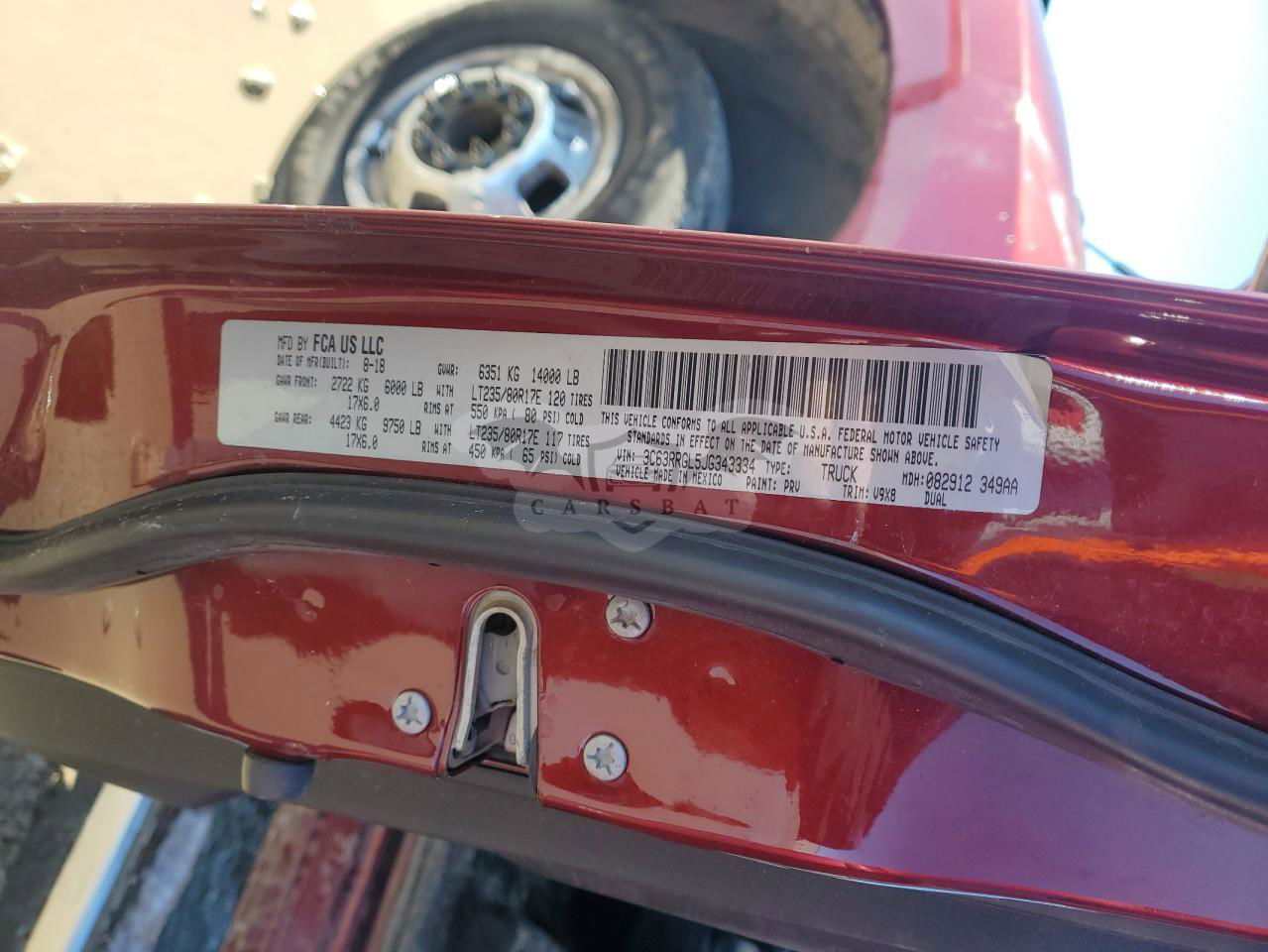 • VIN: 3C63RRGL5JG343334