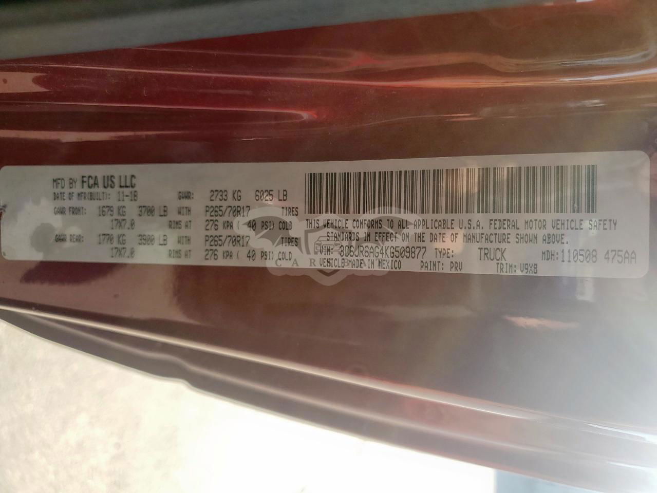 • VIN: 3C6JR6AG4KG509877