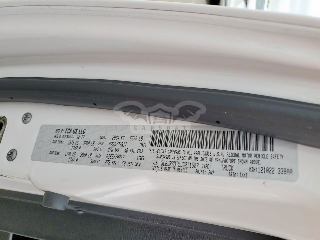 • VIN: 3C6JR6DT5JG211507