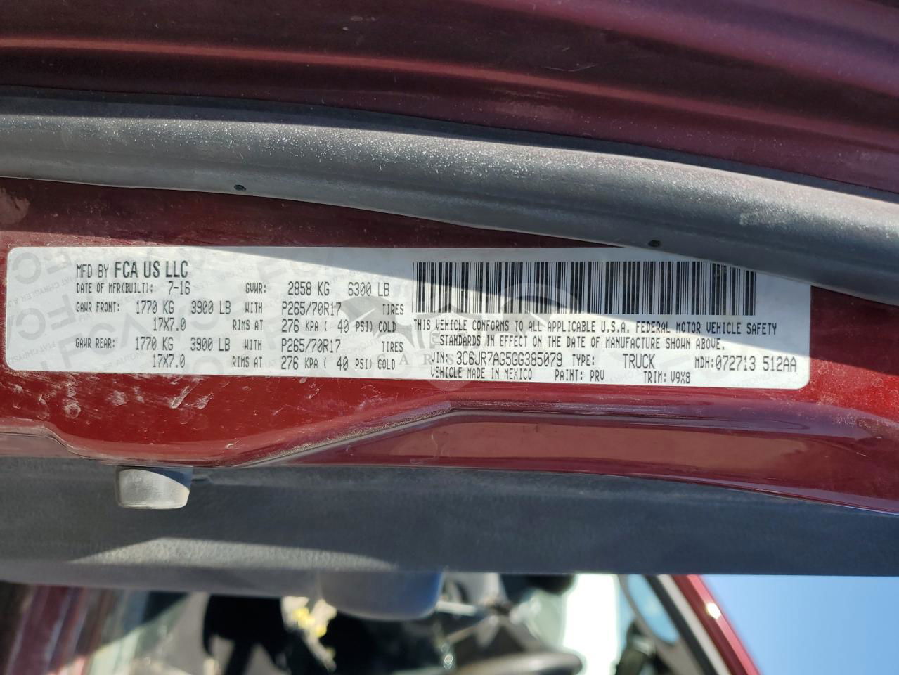 • VIN: 3C6JR7AG5GG385079