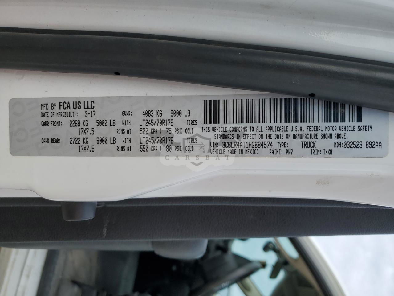 • VIN: 3C6LR4AT1HG684574