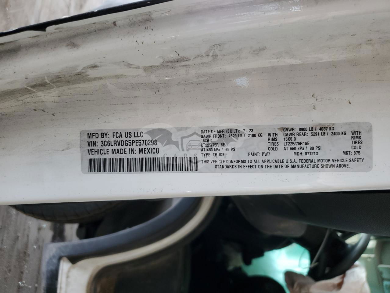• VIN: 3C6LRVDG5PE570298