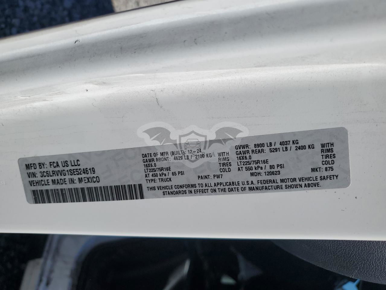 • VIN: 3C6LRVVG1SE524619
