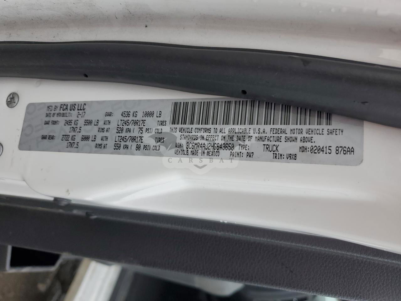 • VIN: 3C6MR4AJ2HG643650