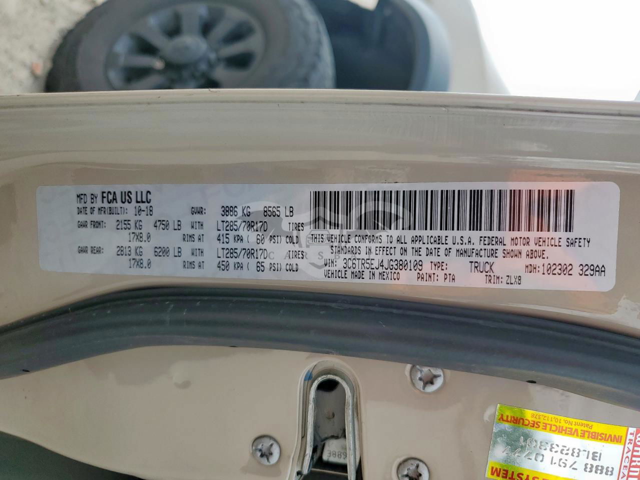 • VIN: 3C6TR5EJ4JG380109