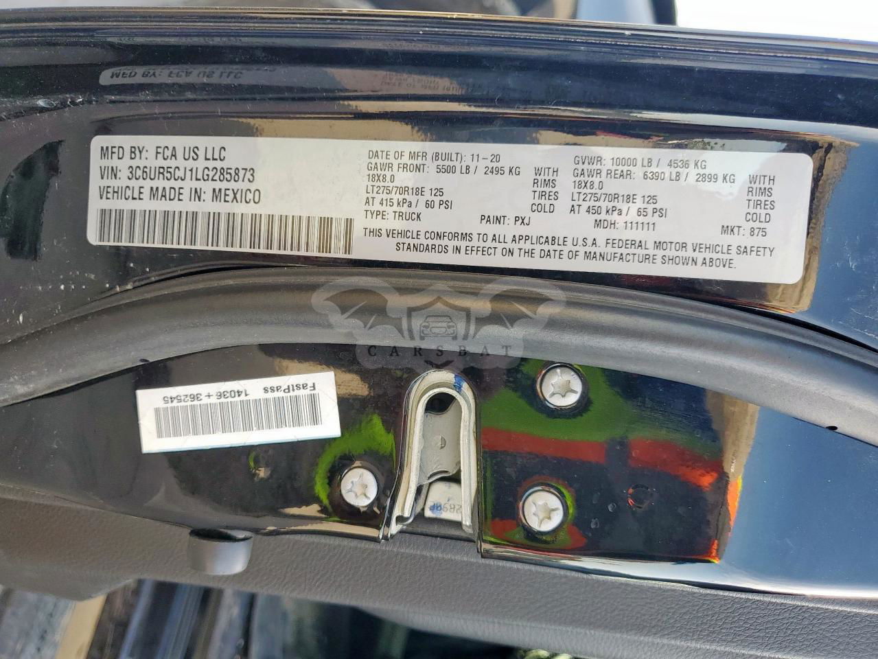 • VIN: 3C6UR5CJ1LG285873