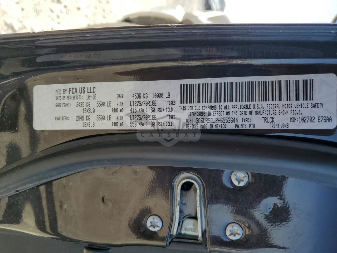 • VIN: 3C6UR5CJ2HG553644