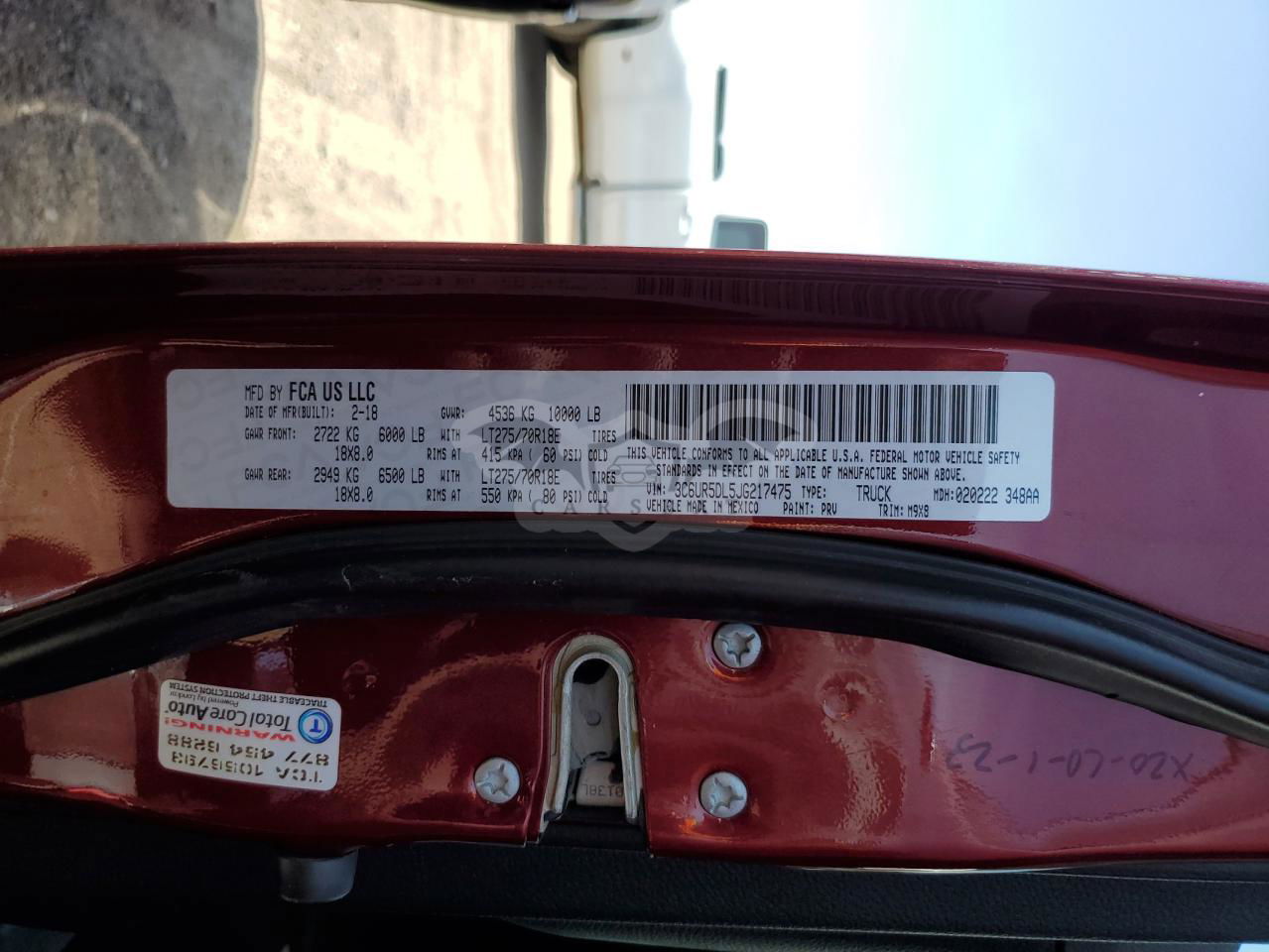 • VIN: 3C6UR5DL5JG217475