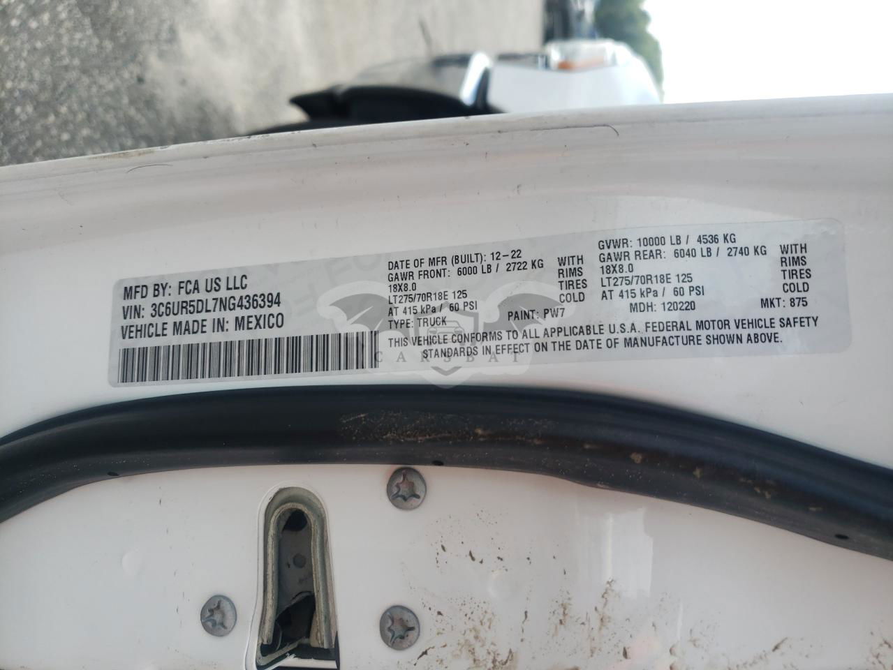 • VIN: 3C6UR5DL7NG436394