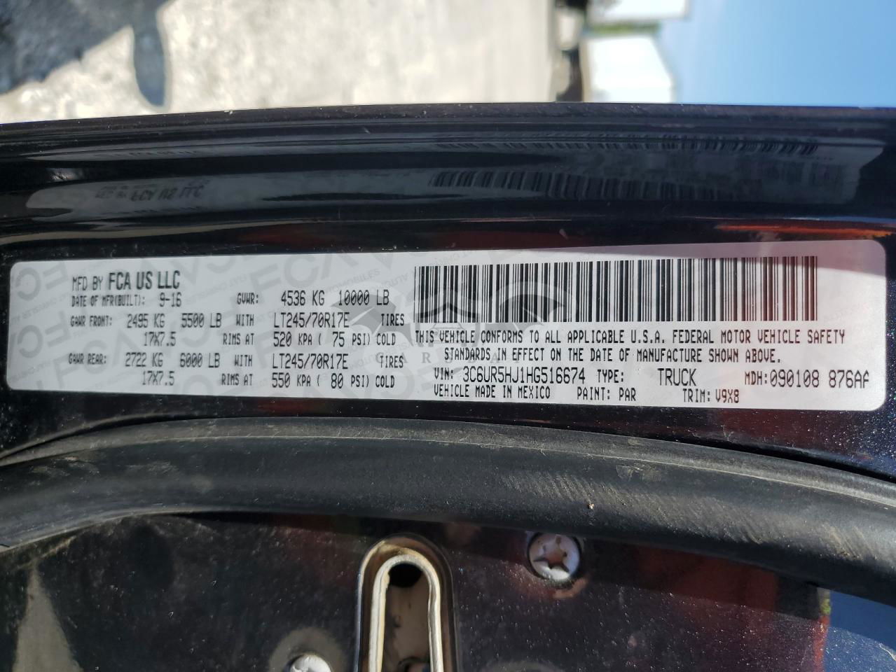 • VIN: 3C6UR5HJ1HG516674