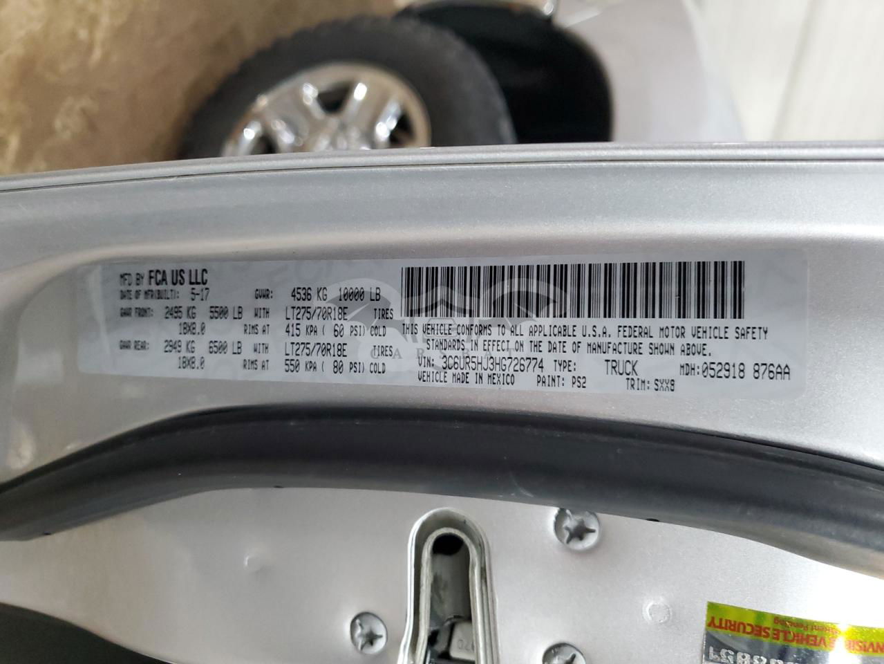 • VIN: 3C6UR5HJ3HG726774