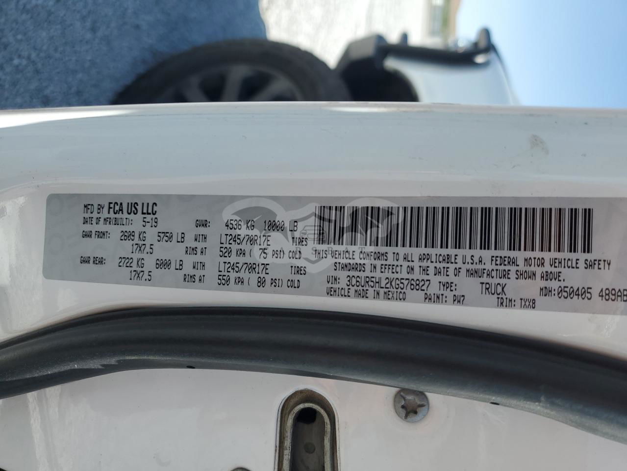 • VIN: 3C6UR5HL2KG576827