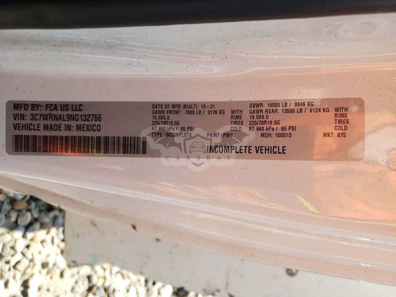 • VIN: 3C7WRNAL9NG132766