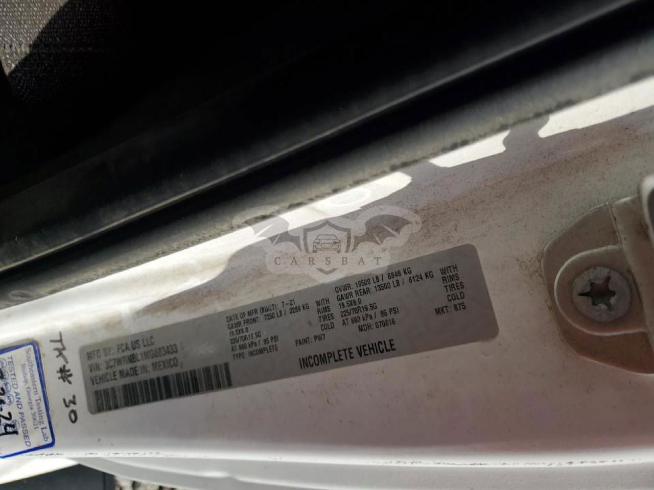 • VIN: 3C7WRNBL1MG683433