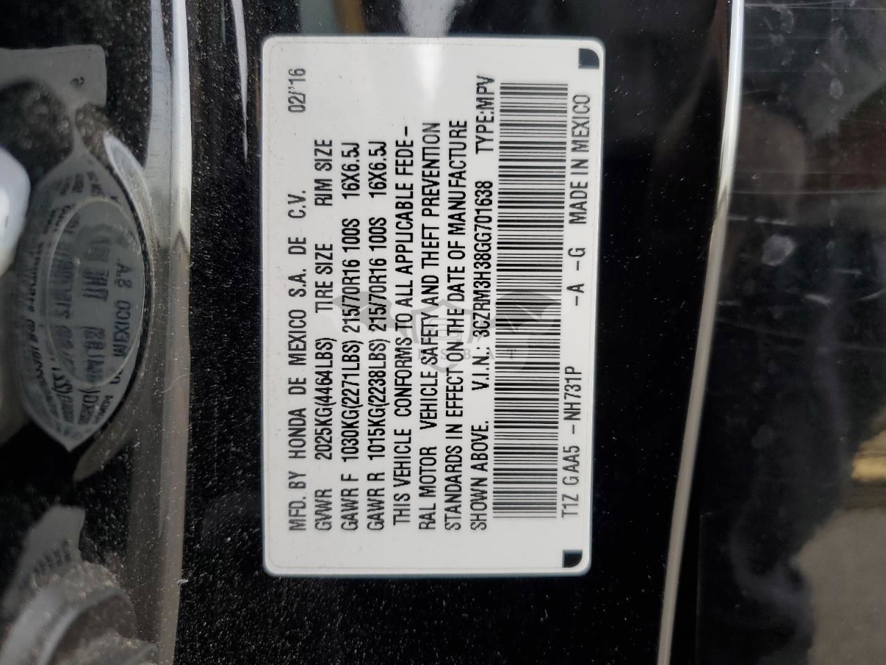 • VIN: 3CZRM3H38GG701638