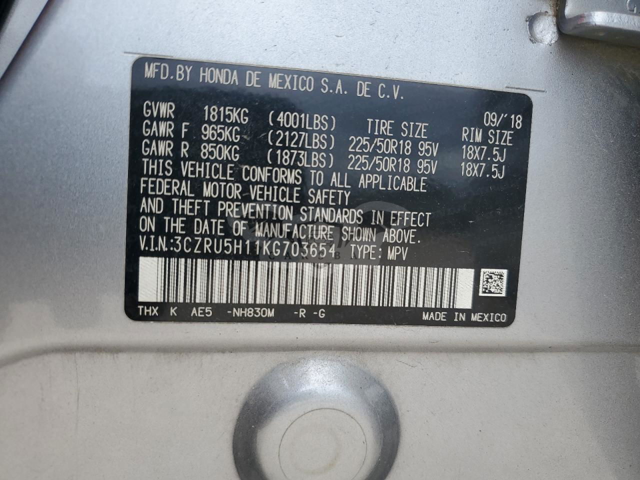 • VIN: 3CZRU5H11KG703654
