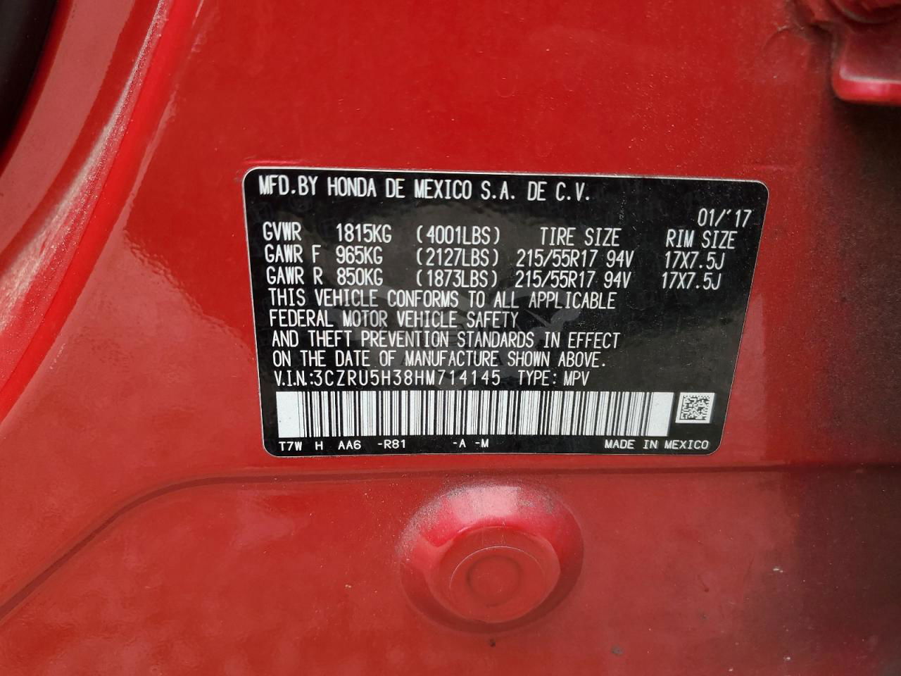 • VIN: 3CZRU5H38HM714145