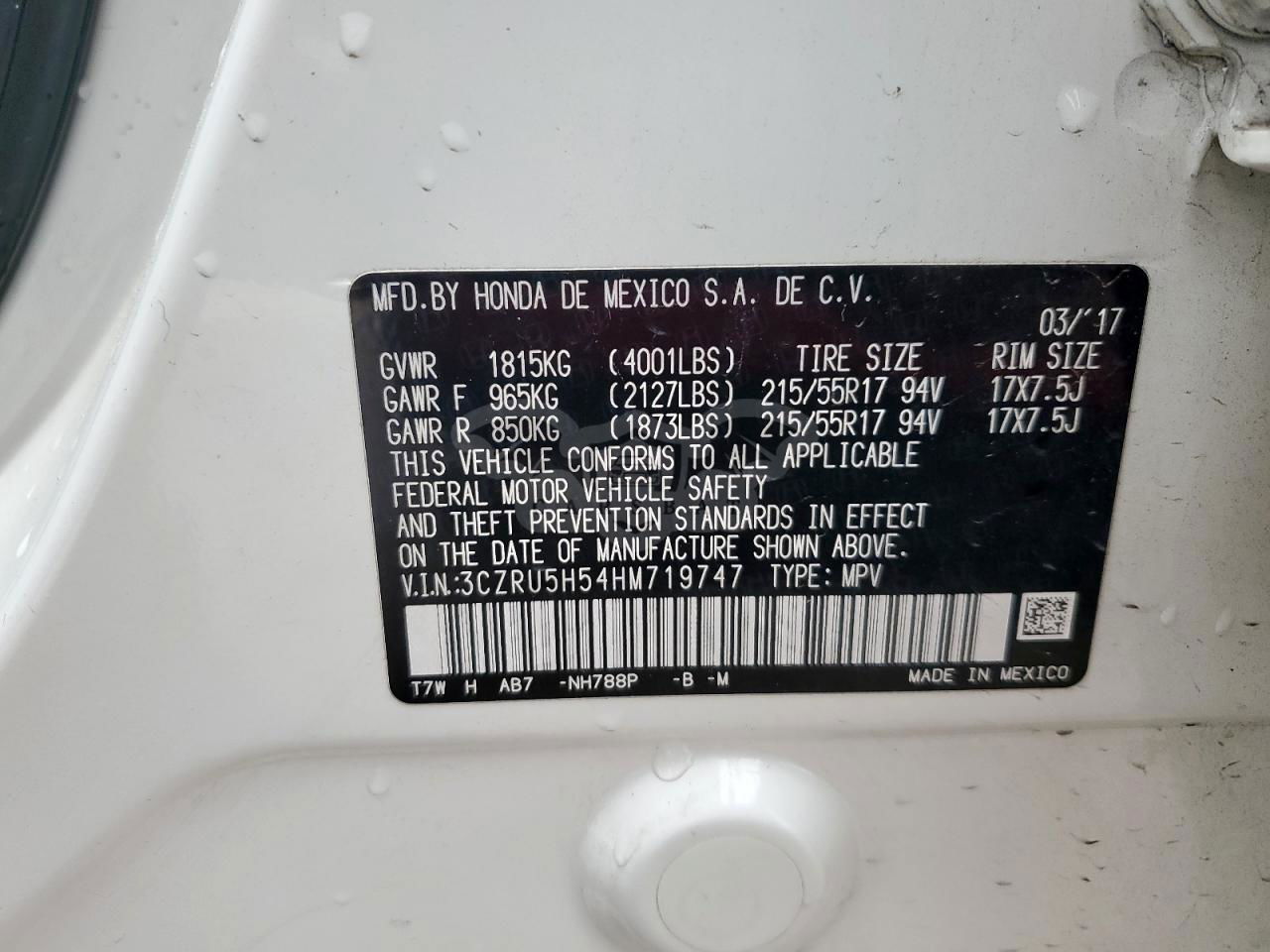 • VIN: 3CZRU5H54HM719747