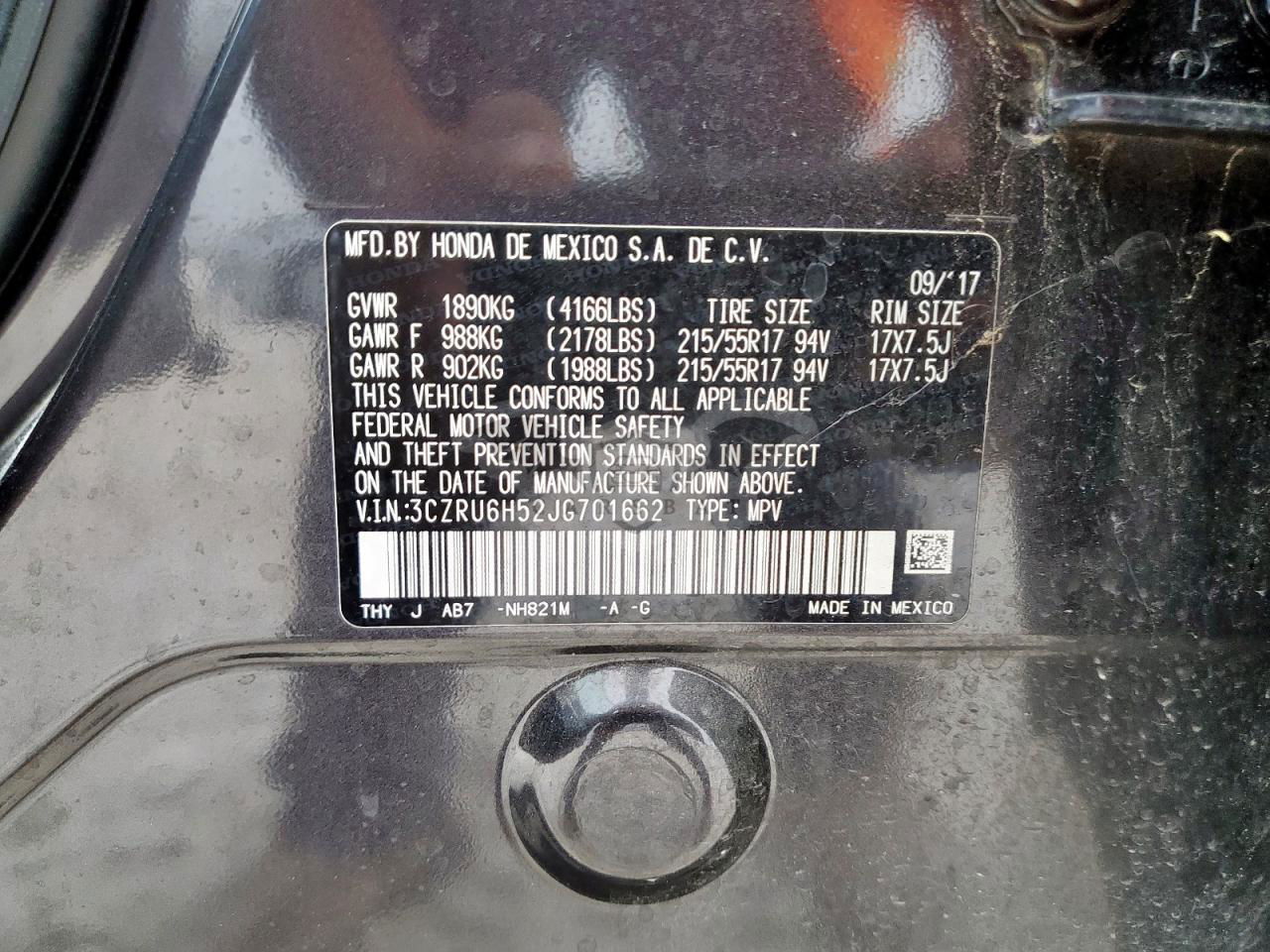 • VIN: 3CZRU6H52JG701662