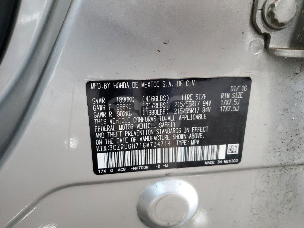 • VIN: 3CZRU6H71GM734714