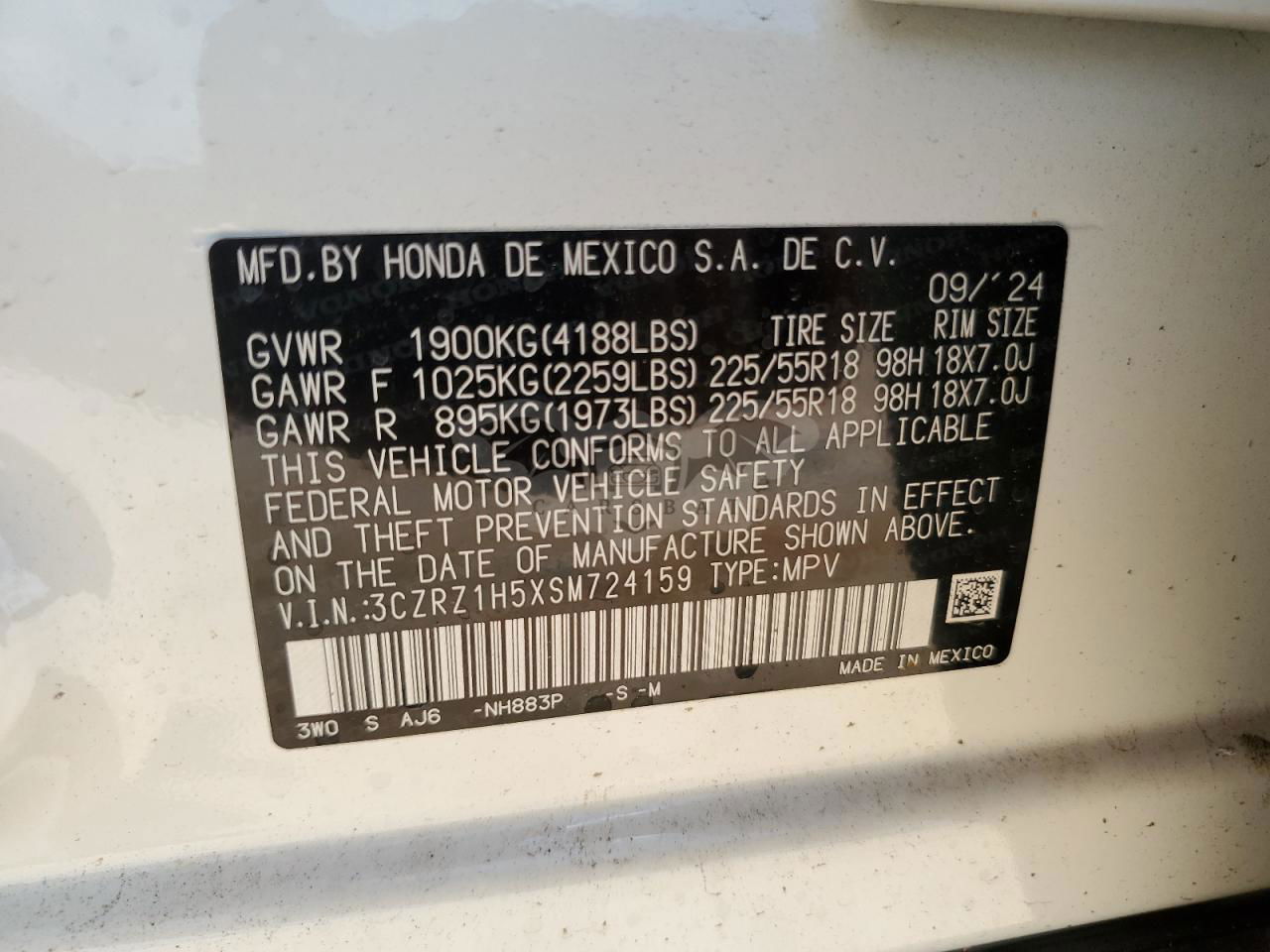 • VIN: 3CZRZ1H5XSM724159