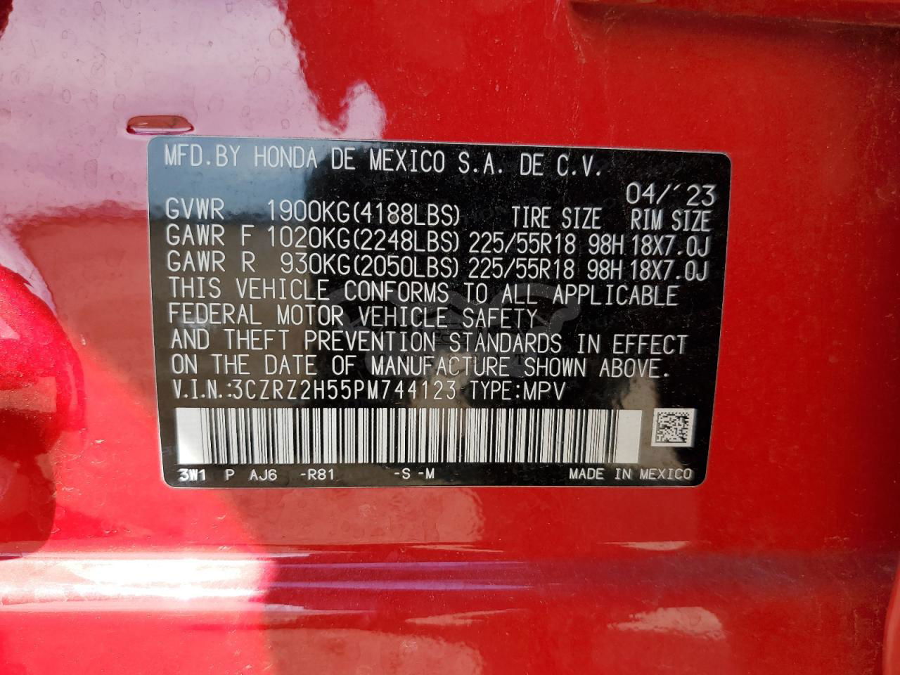 • VIN: 3CZRZ2H55PM744123