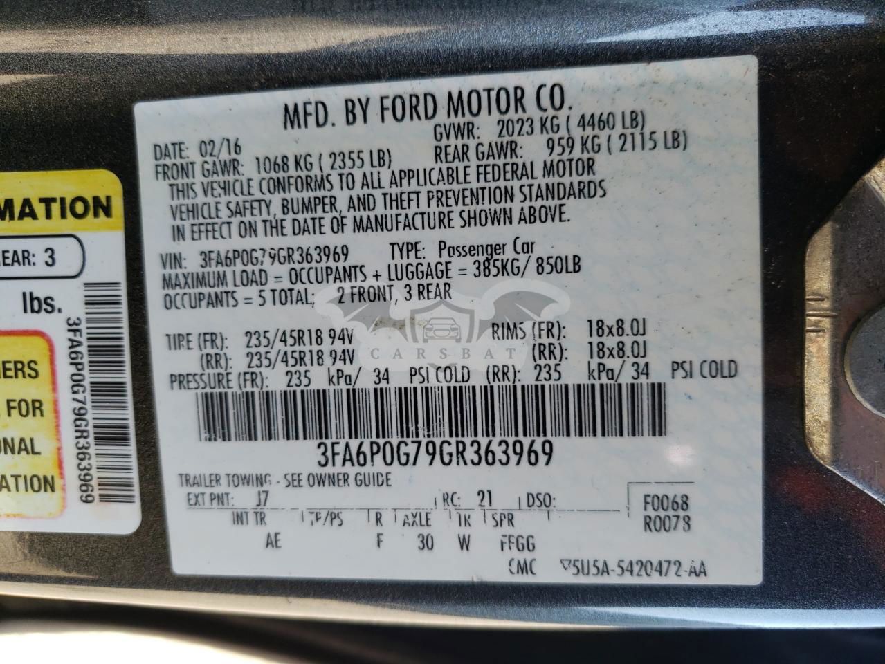 • VIN: 3FA6P0G79GR363969