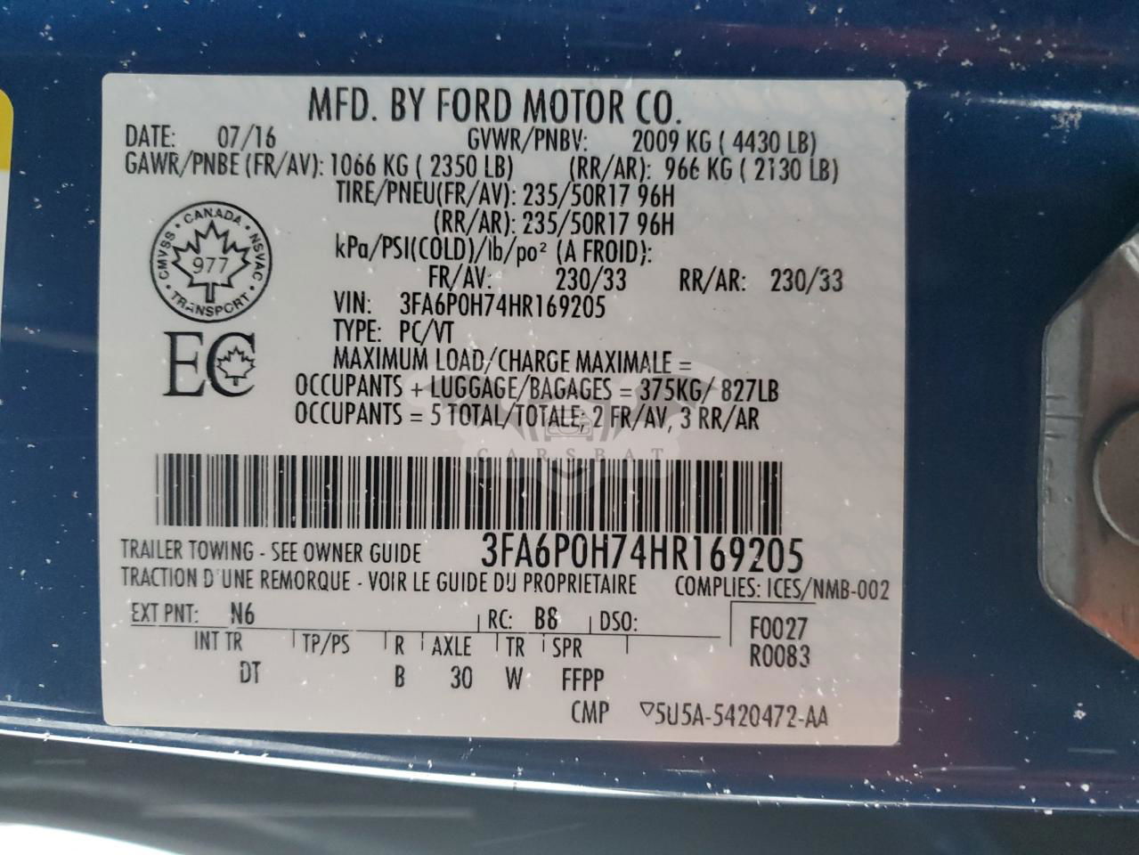 • VIN: 3FA6P0H74HR169205