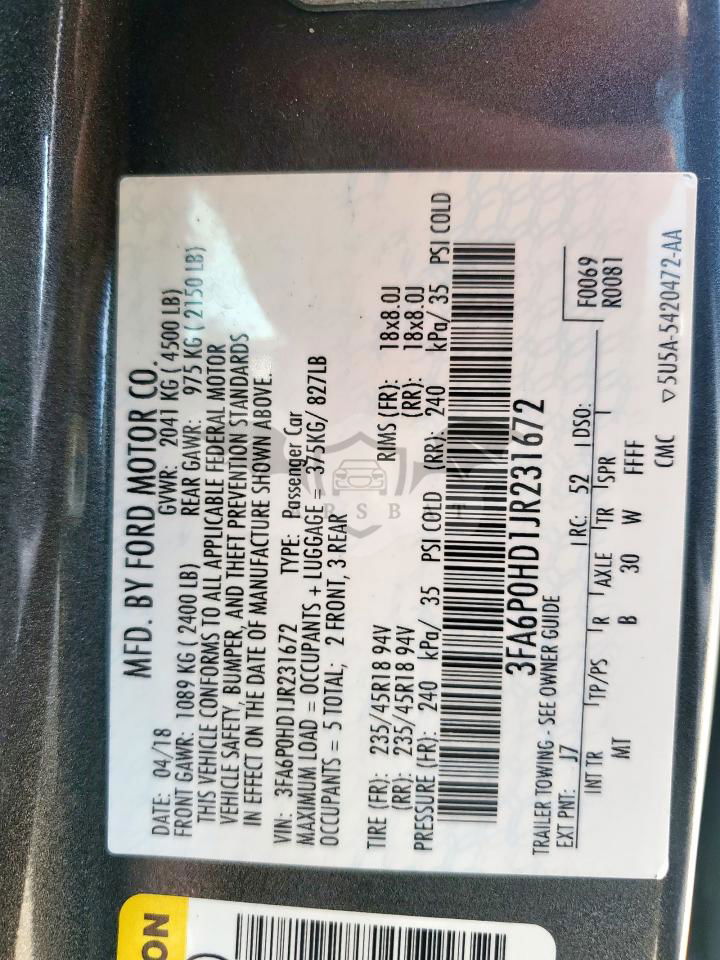 • VIN: 3FA6P0HD1JR231672