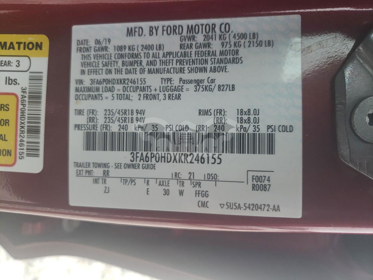 • VIN: 3FA6P0HDXKR246155
