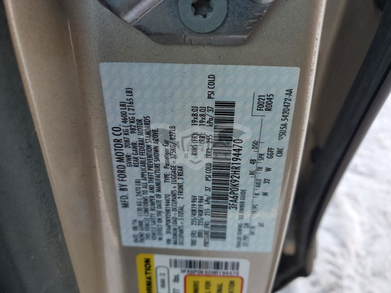 • VIN: 3FA6P0K92HR194470