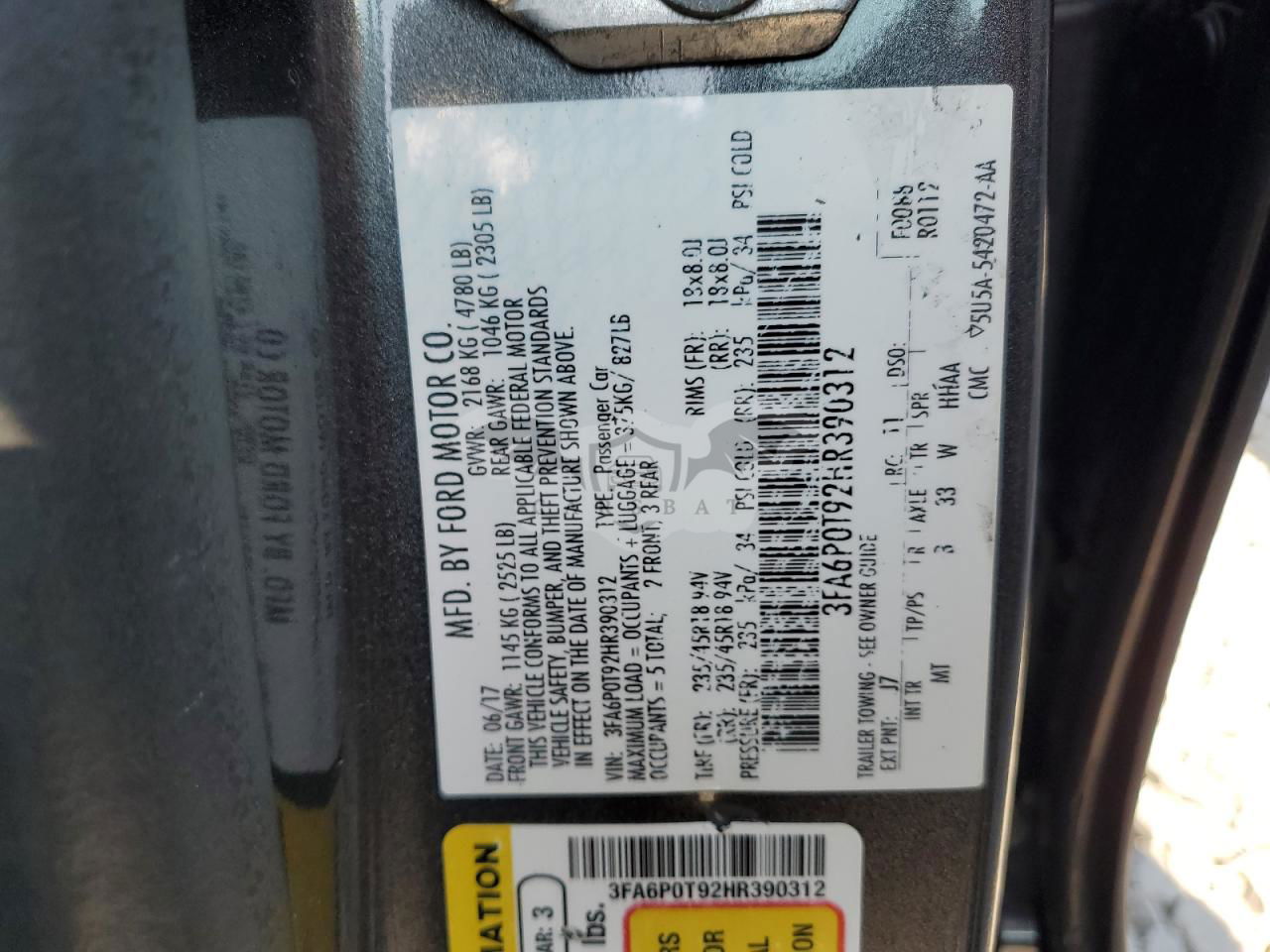 • VIN: 3FA6P0T92HR390312
