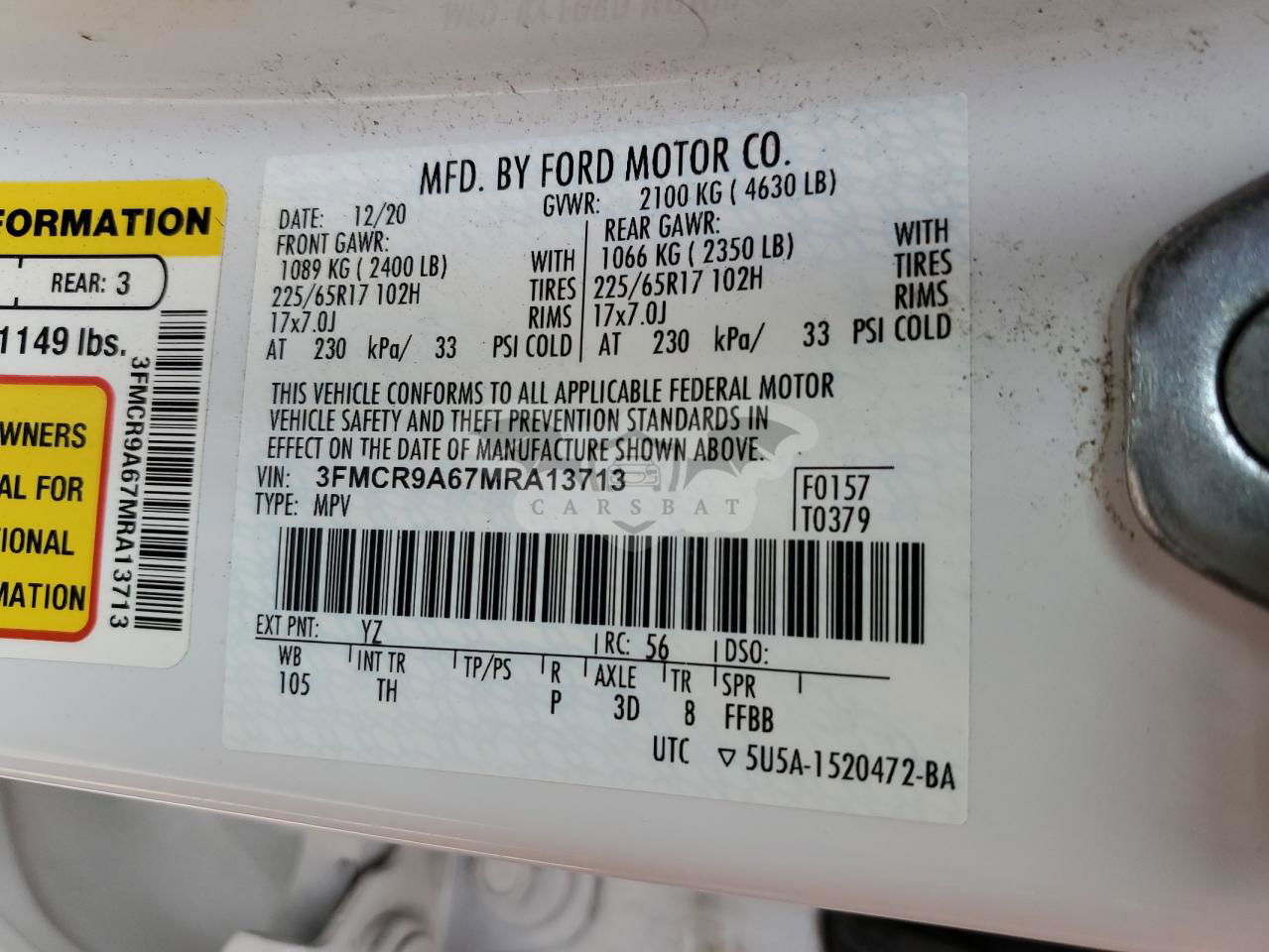 • VIN: 3FMCR9A67MRA13713