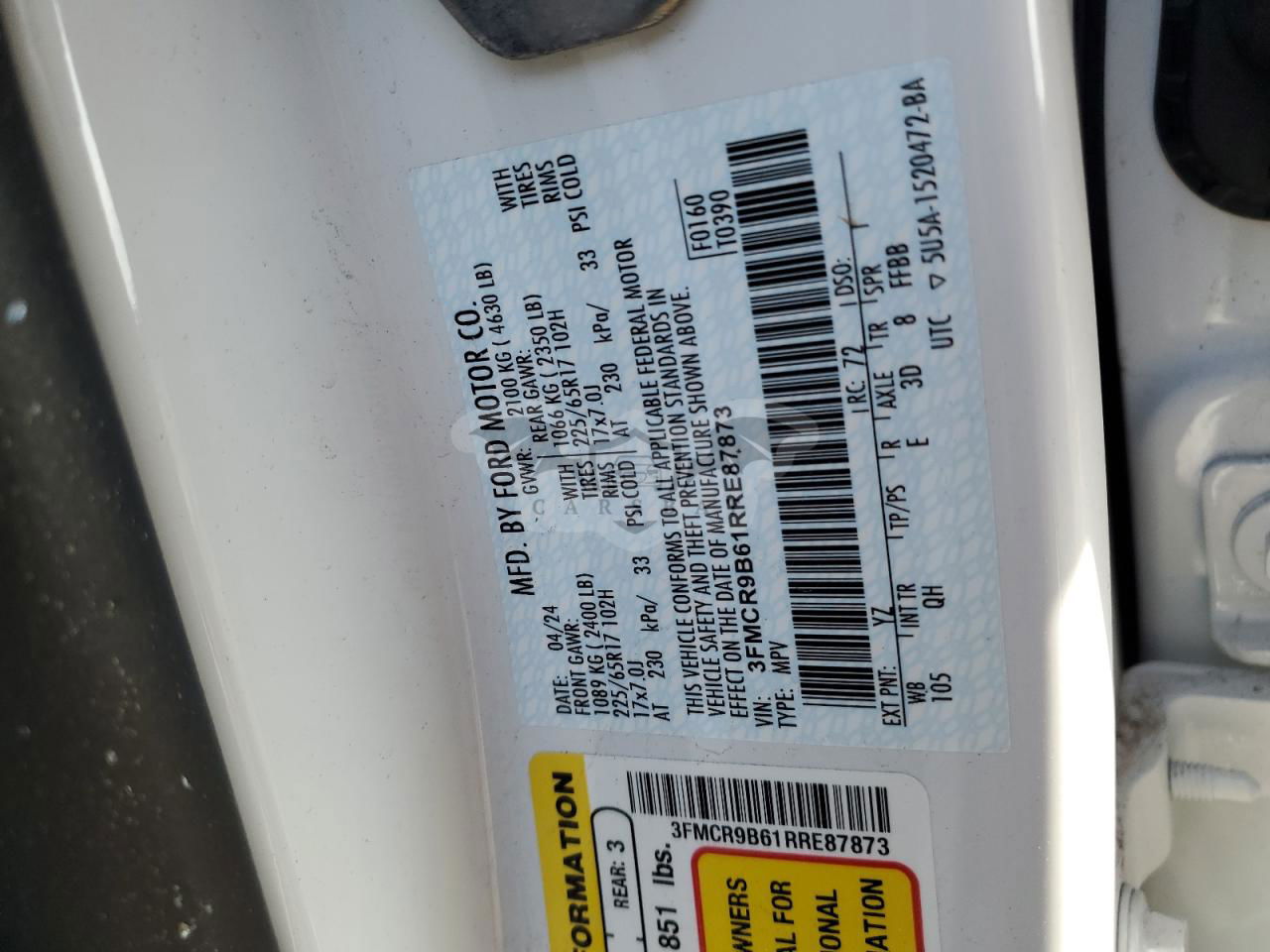 • VIN: 3FMCR9B61RRE87873