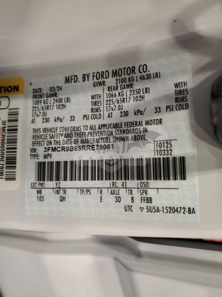 • VIN: 3FMCR9B65RRE78061
