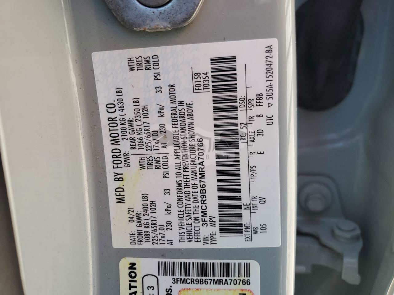 • VIN: 3FMCR9B67MRA70766